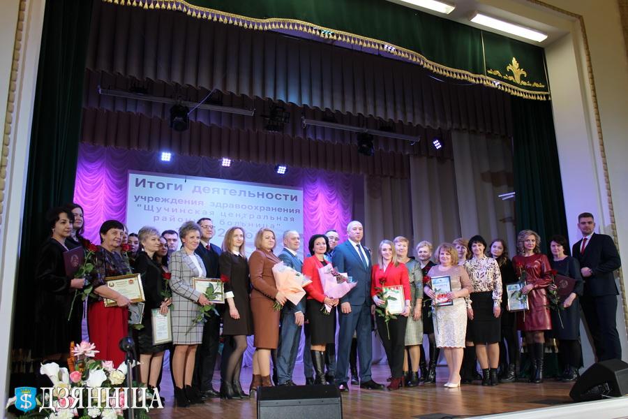 В своих выступлениях начальник главного управления здравоохранения Людмила Кеда, председатель райисполкома Алексей Садовский, председатель районного объединения профсоюзов Юрий Пашук высоко оценили профессионализм щучинских медиков и выразили им огромную признательность за спасённые жизни и здоровье людей. Большая группа медицинских работников была награждена Почётными грамотами – Министерства здравоохранения, областного и районного исполнительных комитетов, профсоюзов. А талантливые воспитанники ДТДиМ подарили гостям замечательную концертную программу.